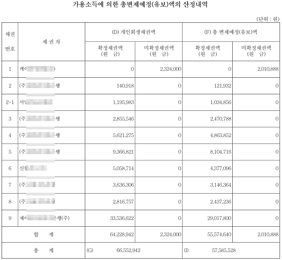 총 실제가용소득 (총 납입액) 57,585,528 원