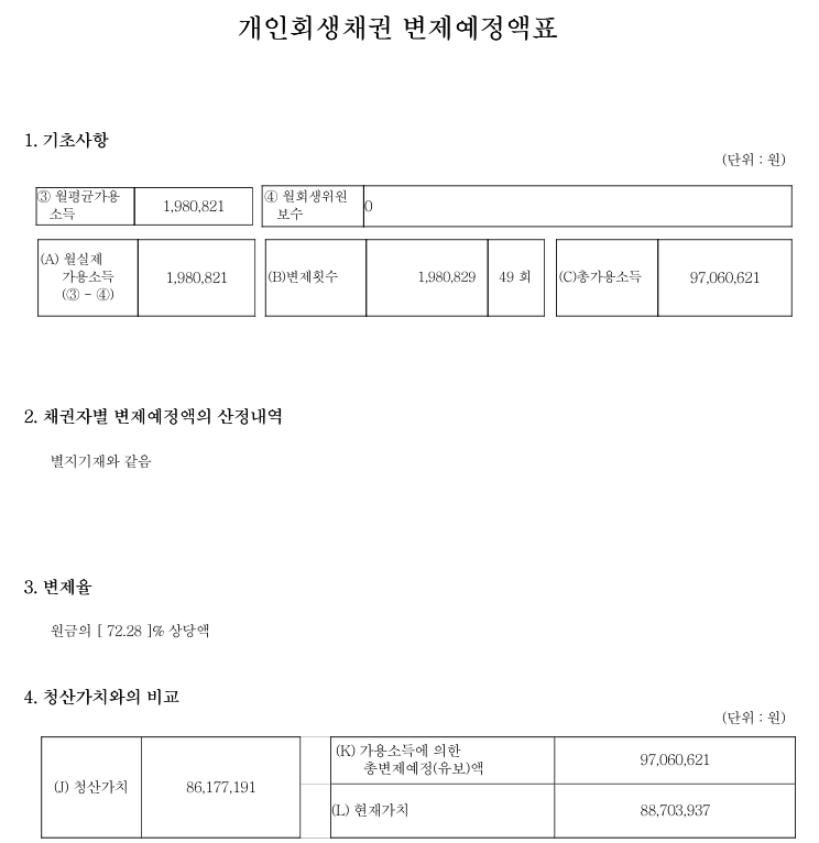 월 변 제 금 : 1,980,821 원 49 개월