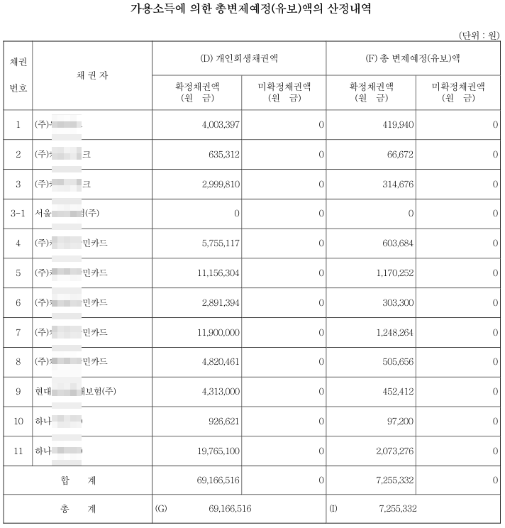 총 실제가용소득 (총 납입액) 7,255,332 원