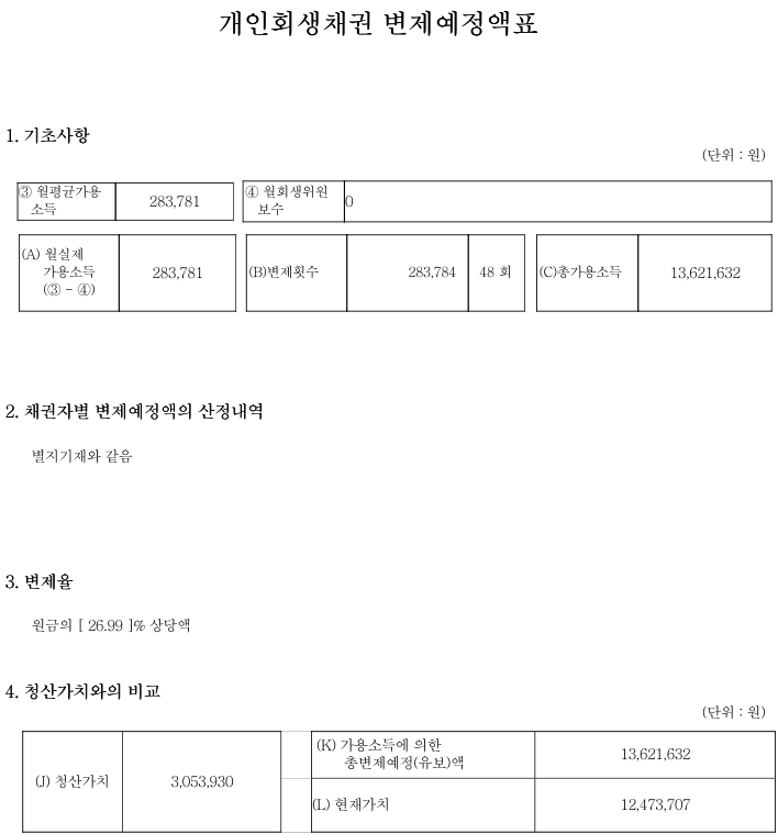 월 변 제 금 : 283,781 원 48 개월