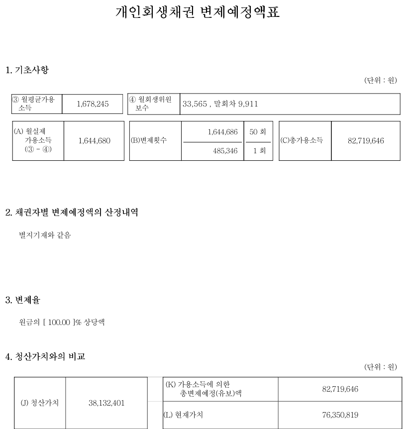 변 제 율 100 % (원금기준)
