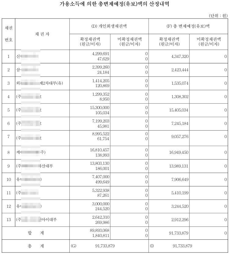채권현재액 합 계 : 91,733,879 원