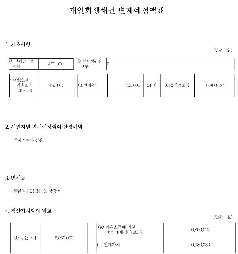 월 변 제 금 : 450,000 원 24 개월